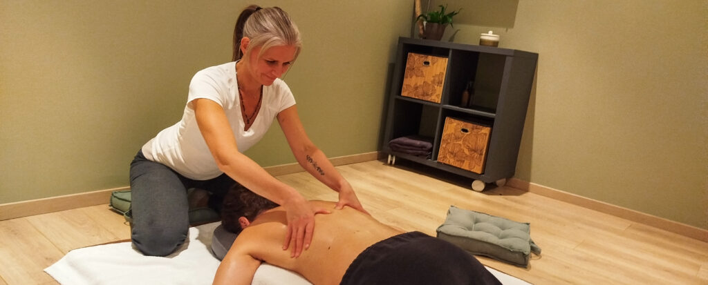 Riche de plus de 20 ans d’expérience en tant que kinésithérapeute et formée à différents types de massage, je vous propose un massage entièrement adapté à vos besoins et aux tensions que je percevrai sous mes mains. C’est pourquoi la séance commence toujours par un temps d’échange afin de définir ensemble vos attentes, les points sur lesquels vous souhaitez insister, l’intensité que vous aimez, les zones massées, tout en prenant en compte vos antécédents.